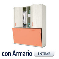 Mientras las literas abatibles horizontales estén plegadas, adoptan el aspecto de un armario que se integra perfectamente junto al resto del mobiliario de la habitación. De esta manera, quien no sepa que ese armario es una litera abatible, ni se dará cuenta de lo que realmente es y pasará totalmente desapercibida.