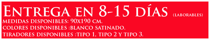 El mueble exterior está FABRICADO INTEGRAMENTE EN TABLERO MELAMÍNICO. La Estructura exterior fabricada en Colores Base y la puerta en Colores Base y Colores de Combinación.