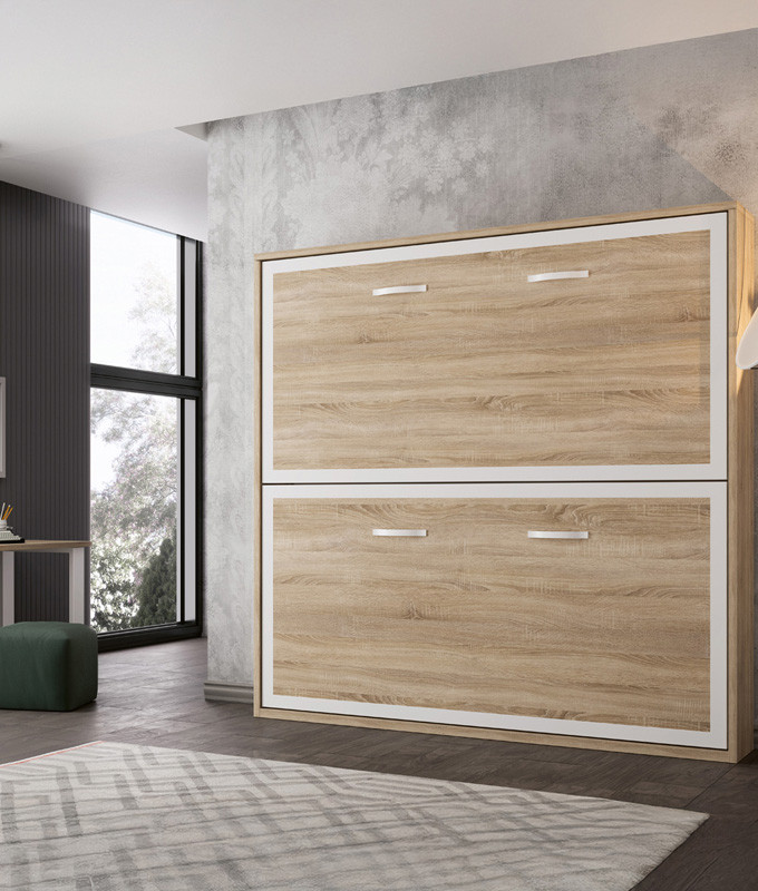 Las camas tienen una APERTURA HORIZONTAL, permitiendo ocupar el mínimo espacio. Tiene espacio para UN COLCHÓN CON UNA ALTURA MÁXIMA DE 20 CM.
