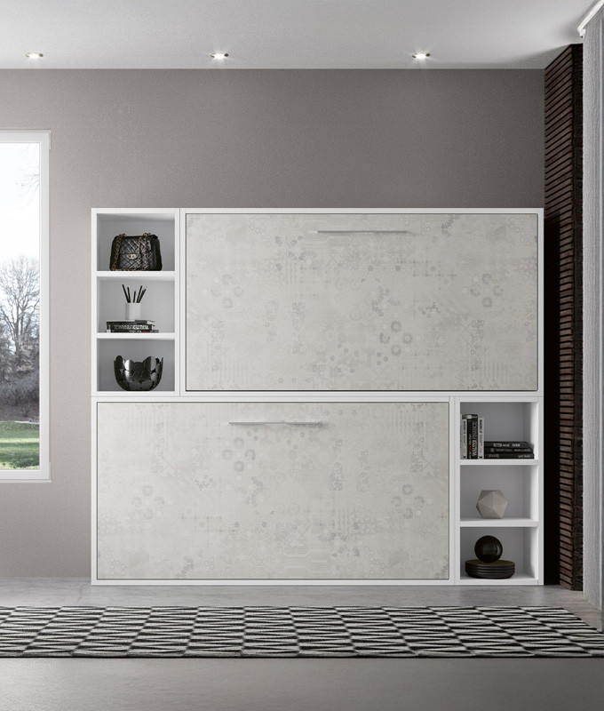 Las camas tienen una APERTURA HORIZONTAL, permitiendo ocupar el mínimo espacio. Tiene espacio para UN COLCHÓN CON UNA ALTURA MÁXIMA DE 20 CM.