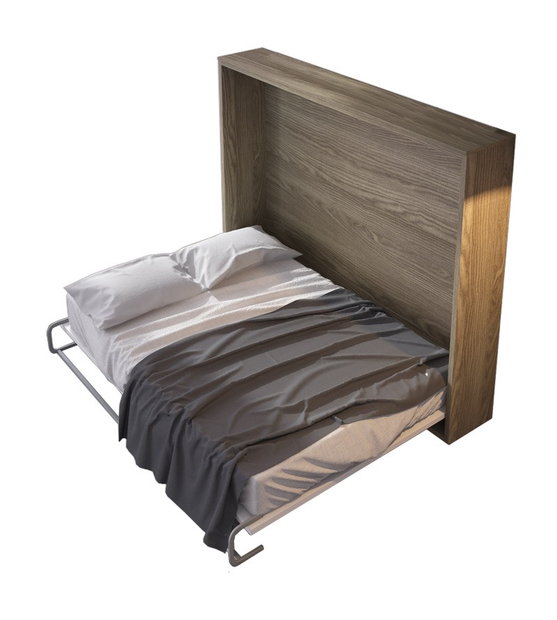 La cama tiene una APERTURA HORIZONTAL, permitiendo ocupar el mínimo espacio. Tiene espacio para UN COLCHÓN CON UNA ALTURA MÁXIMA DE 20 CM.