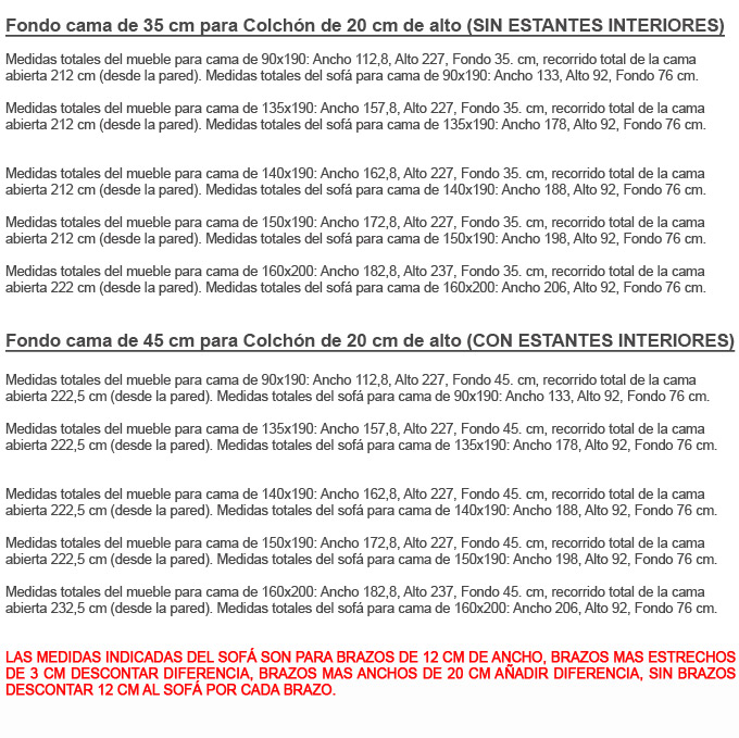 FONDO CAMA DISPONIBLE EN 35 CM SIN ESTANTES Y EN 45 CM CON ESTANTES INTERIORES.