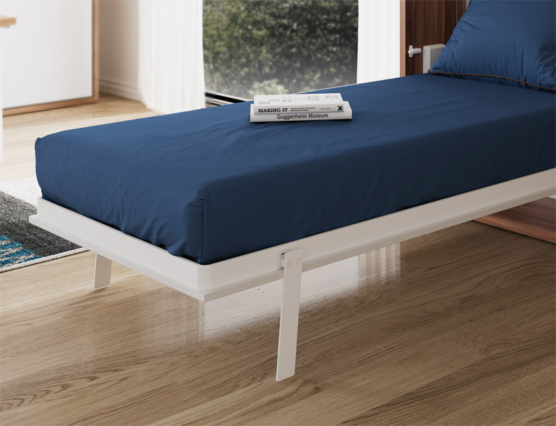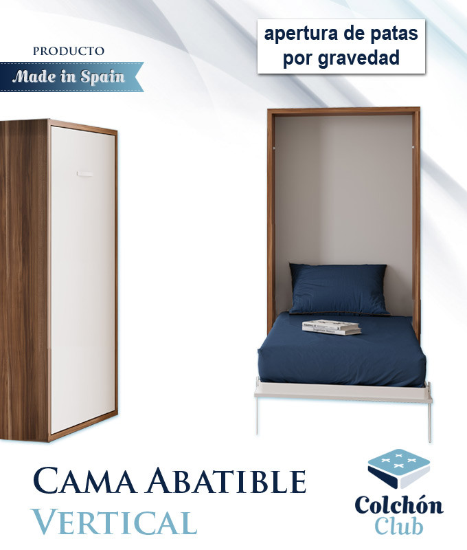 El mueble exterior está FABRICADO INTEGRAMENTE EN TABLERO MELAMÍNICO. La Estructura exterior fabricada en Colores Base y la puerta en Colores Base y Colores de Combinación. La cama tiene una APERTURA VERTICAL, permitiendo ocupar el mínimo espacio. EL CONJUNTO DISPONE DE SISTEMAS HIDRAULICOS DE ABATIMIENTO Y SE SUJETA A LA PARED MEDIANTE TACOS.