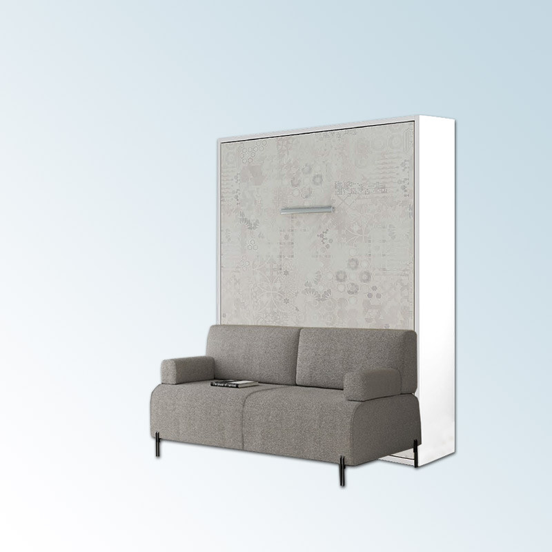 El mueble exterior está FABRICADO INTEGRAMENTE EN TABLERO MELAMÍNICO. La Estructura exterior fabricada en Colores Base y la puerta en Colores Base y Colores de Combinación. La cama tiene una APERTURA VERTICAL, permitiendo ocupar el mínimo espacio. Tiene espacio para UN COLCHÓN CON UN GROSOR MÁXIMO DE 20 o 26 CM DEPENDIENDO DEL FONDO ELEGIDO DE LA CAMA ELEGIDO. EL CONJUNTO DISPONE DE SISTEMAS HIDRAULICOS DE ABATIMIENTO Y SE SUJETA A LA PARED MEDIANTE TACOS,