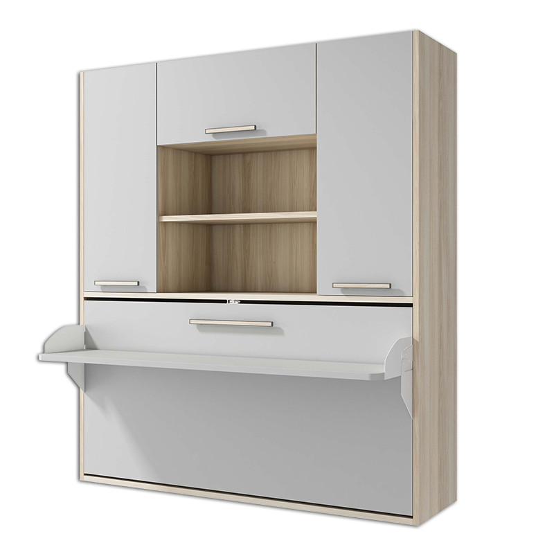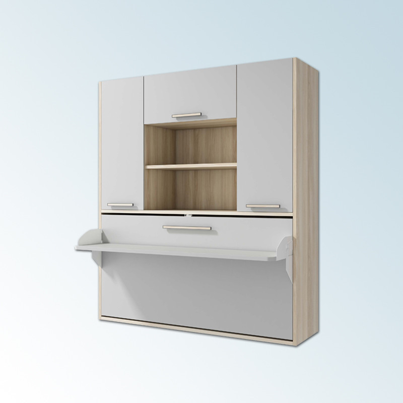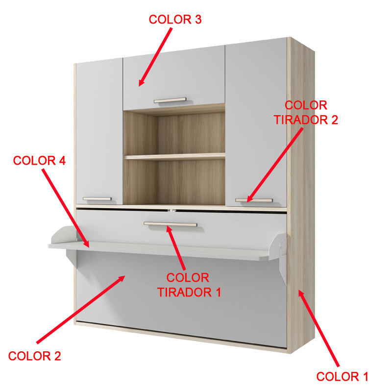 EL ESCRITORIO ABATIBLE QUE INCLUYE LE OTORGA UN EXTRA DE FUNCIONALIDAD AL CONJUNTO. Este mueble es ideal para habitaciones juveniles dónde el espacio es fundamental, de este modo incluir un escritorio o una zona de ocio será tarea fácil al poder prescindir del espacio dedicado a descansar. Los diferentes tonos están especialmente indicados para crear ambientes adecuados a tus necesidades. El conjunto te sorprenderá por su óptima integración en tu espacio, obteniendo un resultado de estilo moderno y funcional.