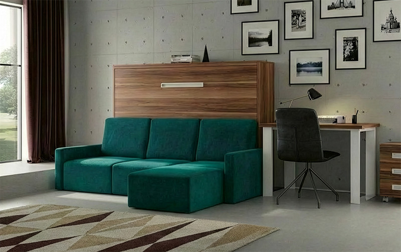 COLCHÓN CLUB LES OFERTA ESTA FUNCIONAL CAMA ABATIBLE CON SOFÁ CHAISELONGUE. PODRÁ AHORRAR ESPACIO Y OBTENER UNA ZONA EXTRA DE JUEGO EN LA HABITACIÓN.