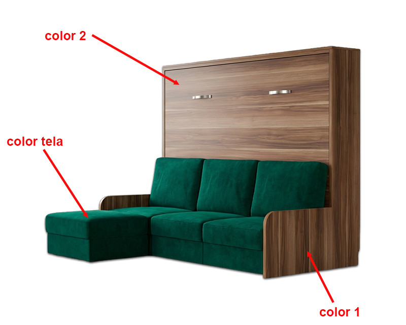 El mueble exterior está FABRICADO INTEGRAMENTE EN TABLERO MELAMÍNICO. La Estructura exterior fabricada en Colores Base y la puerta en Colores Base y Colores de Combinación. La cama tiene una APERTURA HORIZONTAL, permitiendo ocupar el mínimo espacio. Tiene espacio para UN COLCHÓN CON UN GROSOR MÁXIMO DE 20 o 26 CM DEPENDIENDO DEL FONDO ELEGIDO DE LA CAMA ELEGIDO. EL CONJUNTO DISPONE DE SISTEMAS HIDRAULICOS DE ABATIMIENTO Y SE SUJETA A LA PARED MEDIANTE TACOS,