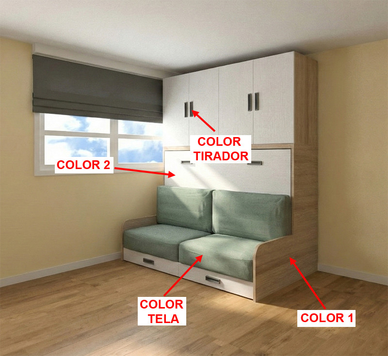 El mueble exterior está FABRICADO INTEGRAMENTE EN TABLERO MELAMÍNICO. La Estructura exterior fabricada en Colores Base y la puerta en Colores Base y Colores de Combinación. La cama tiene una APERTURA HORIZONTAL, permitiendo ocupar el mínimo espacio. La cama tiene una APERTURA HORIZONTAL, permitiendo ocupar el mínimo espacio. Tiene espacio para UN COLCHÓN CON UNA ALTURA MÁXIMA DE 20 O 26 CM A ELEGIR.