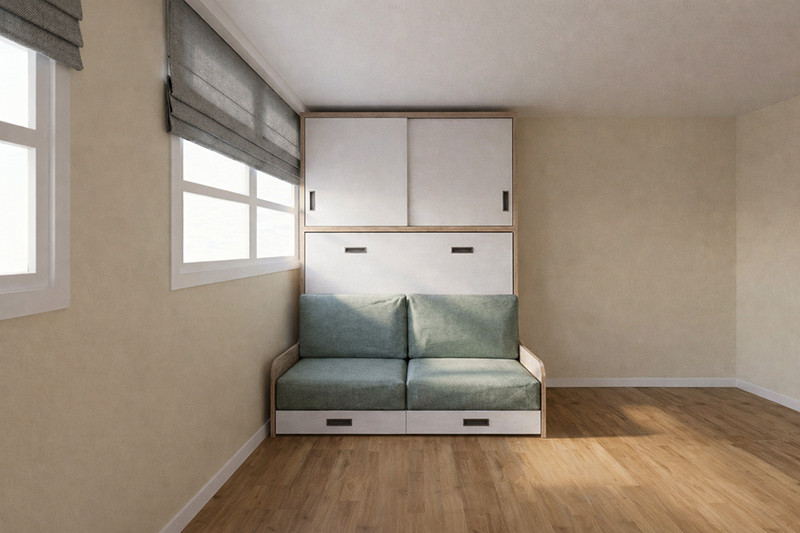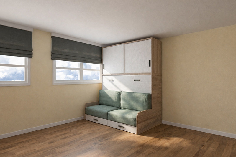 COLCHÓN CLUB LES OFERTA ESTA FUNCIONAL CAMA ABATIBLE CON ARMARIO Y SOFÁ. PODRÁ AHORRAR ESPACIO Y OBTENER UNA ZONA EXTRA DE JUEGO EN LA HABITACIÓN.