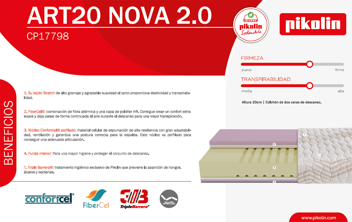 Incluye capa Fibercel que es una novedosa tecnología que consiste en la combinación de una capa de fibra atérmica con una capa de poliéter HR. Esta combinación consigue crear un confort extra suave y deja pasar de forma continuada el aire durante el descanso para una mejor transpiración. los componentes de su fibra atérmica favorecen la correcta temperatura del colchón. la capa de poliéter HR proporciona un nivel de confort extra suave y la combinación de ambas capas favorece el paso del aire permitiendo una transpiración y temperatura constante.