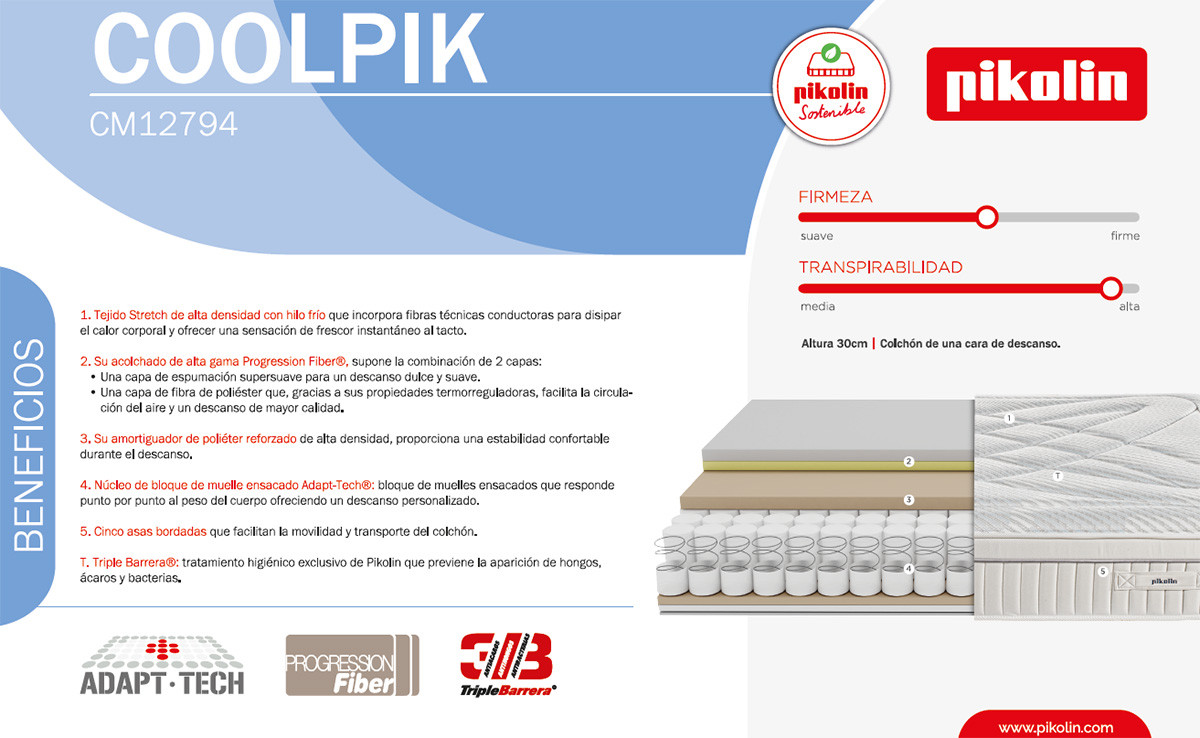 Colchón Pikolin modelo Coolpik de muelles ensacados y tejido que disipa el calor