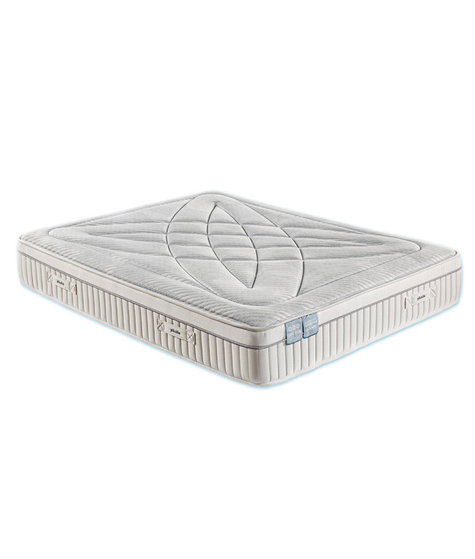 Su tejido Strech con hilo frio incorpora fibras conductoras que disipan el calor corporal ofreciendo una sensación de fresco. El tejido tiene gran capacidad elástica, acoge el cuerpo de forma gradual para una mayor relajación de los músculos y facilita los movimientos durante el descanso. El tejido strech permite que la humedad se evapore de forma más rápida y consigue un tacto más suave al descansar. La protección higiénica que aporta la Triple Barrera® en las capas de acolchado, bloquea el desarrollo de bacterias, ácaro y hongos.