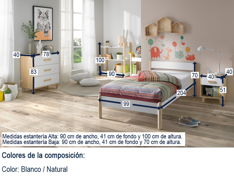 COLCHÓN CLUB LES PRESENTA ESTE DORMITORIO JUVENIL TA04 FABRICADO EN MADERA MACIZA DE PINO.
