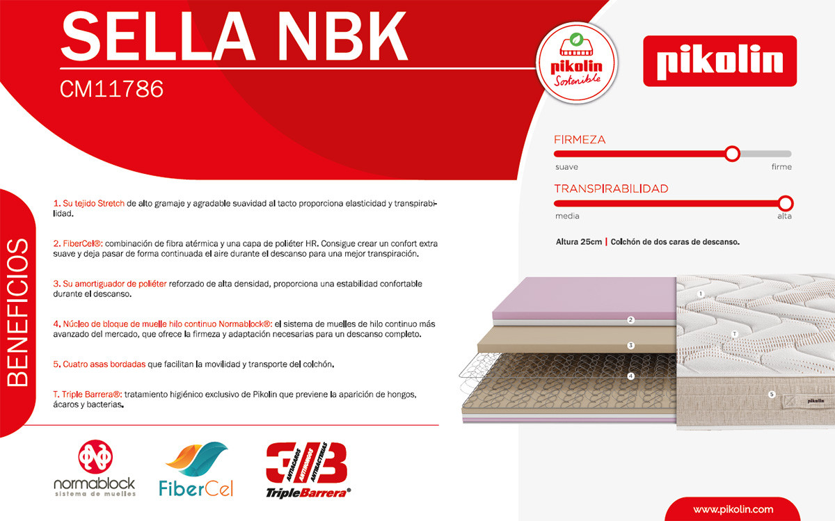 Pack Pikolin, Colchón de Muelles Modelo Sella NBK y Canapé de Madera Pikolin Ref P361000