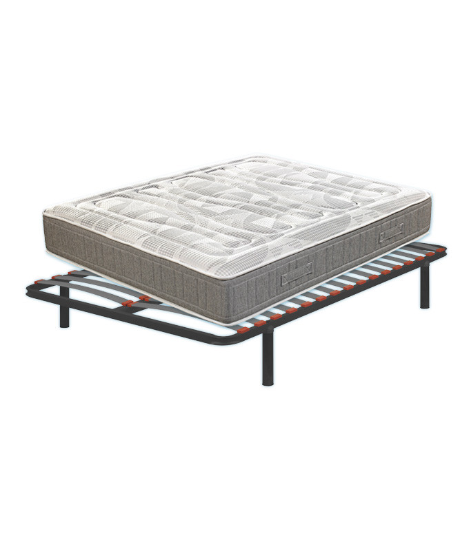 EL SOMIER SG16 ESTA FABRICADO CON UN BASTIDOR DE TUBO DE ACERO en color gris de esquina redondeada, con barra central en medidas de matrimonio.Tapes superpuestos antideslizantes que garantizan la ausencia total de ruidos Larguero central en medidas de matrimonio, que proporciona resistencia mayor y descanso personalizado, evitando la transmisión de movimientos gracias a sus 2 zonas de descanso independientes.