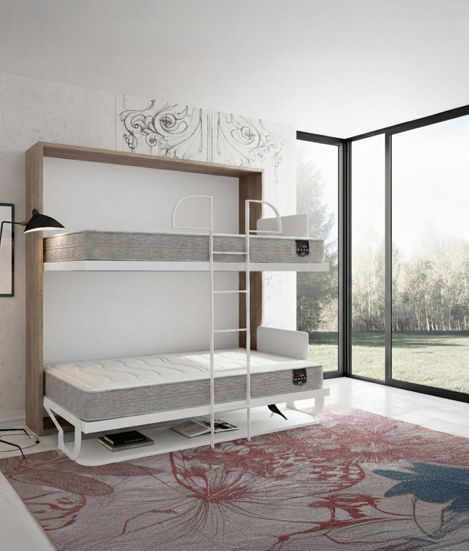 Las camas tienen una APERTURA HORIZONTAL, permitiendo ocupar el mínimo espacio. Tiene espacio para 2 COLCHONES CON UN GROSOR MÁXIMO DE 20 CM.