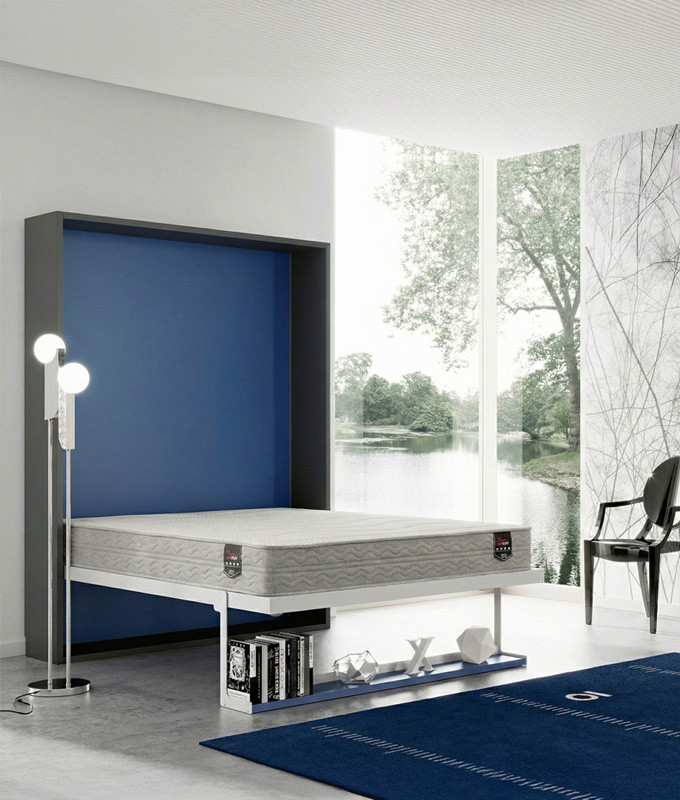 La cama tiene una APERTURA VERTICAL, permitiendo ocupar el mínimo espacio. Tiene espacio para UN COLCHÓN CON UN GROSOR MÁXIMO DE 20 CM.