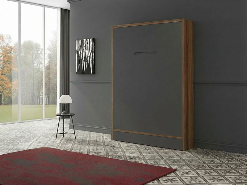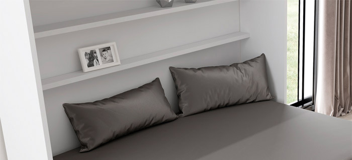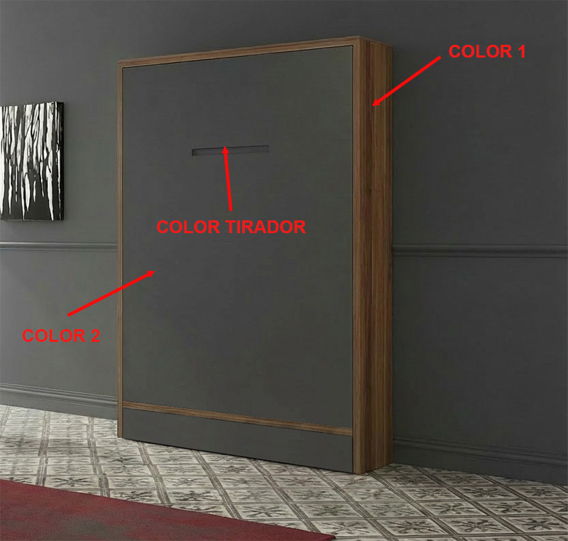 La cama tiene una APERTURA VERTICAL, permitiendo ocupar el mínimo espacio. Tiene espacio para UN COLCHÓN CON UN GROSOR MÁXIMO DE 20 CM.