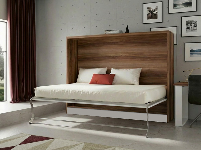La cama tiene una APERTURA HORIZONTAL, permitiendo ocupar el mínimo espacio. Tiene espacio para UN COLCHÓN CON UN GROSOR MÁXIMO DE 20 CM.