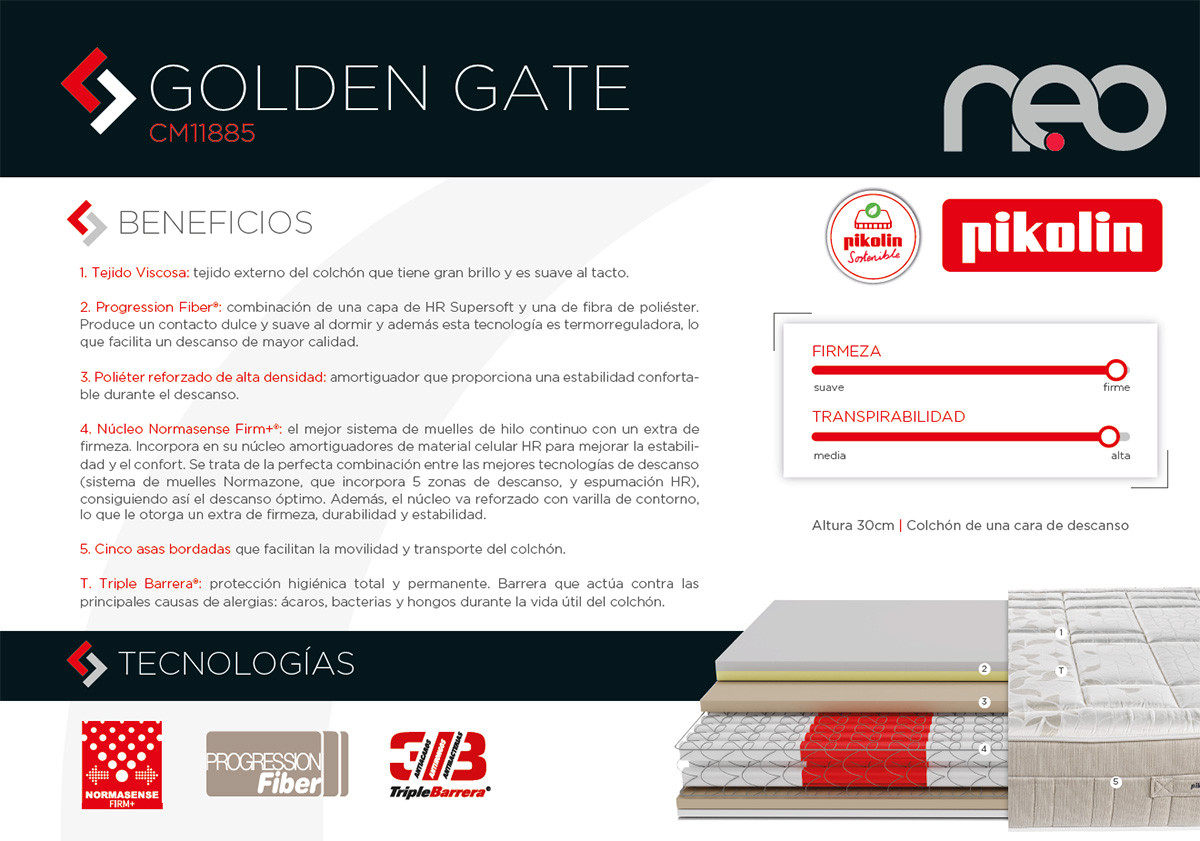 Pack Pikolin, colchón modelo Golden Gate y Somier SM70 con lamas de carbono