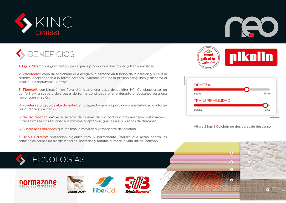 El sistema de muelles NORMAZONE es el sistema de muelles de hilo continuo más avanzado del mercado. La tecnología Zone le otorga 5 zonas diferenciadas al colchón diseñadas con el objetivo de dar la máxima adaptación.