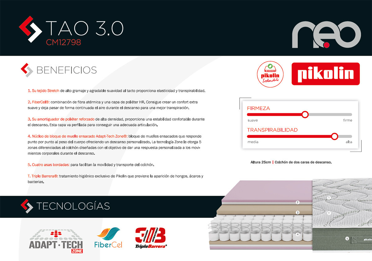 Pack Pikolin, Colchón de Muelles Modelo Tao 3.0 y Base tapizada