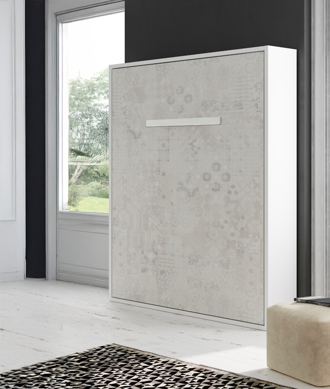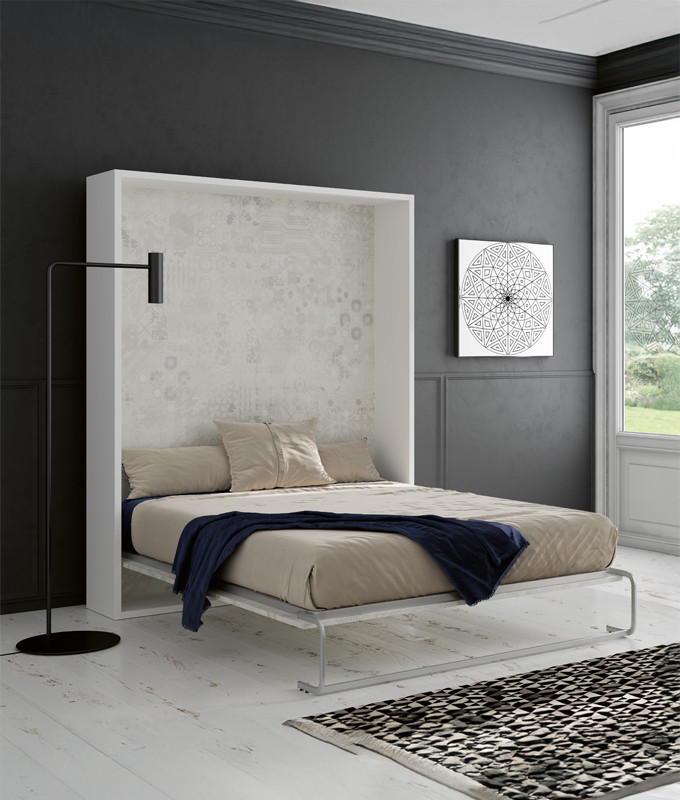 Medidas totales del mueble para cama de 140x190: Ancho 154,3, Alto 206, Fondo 35 cm, recorrido total de la cama abierta 211 cm (desde la pared).